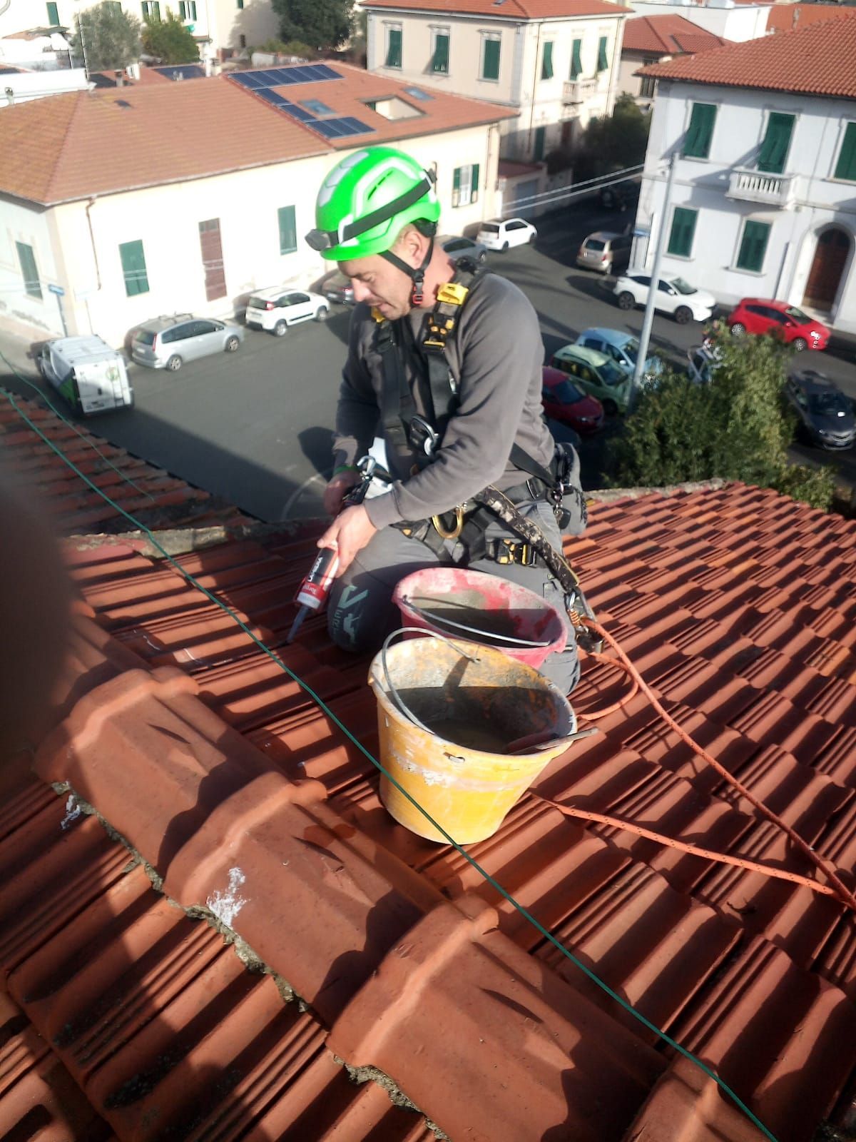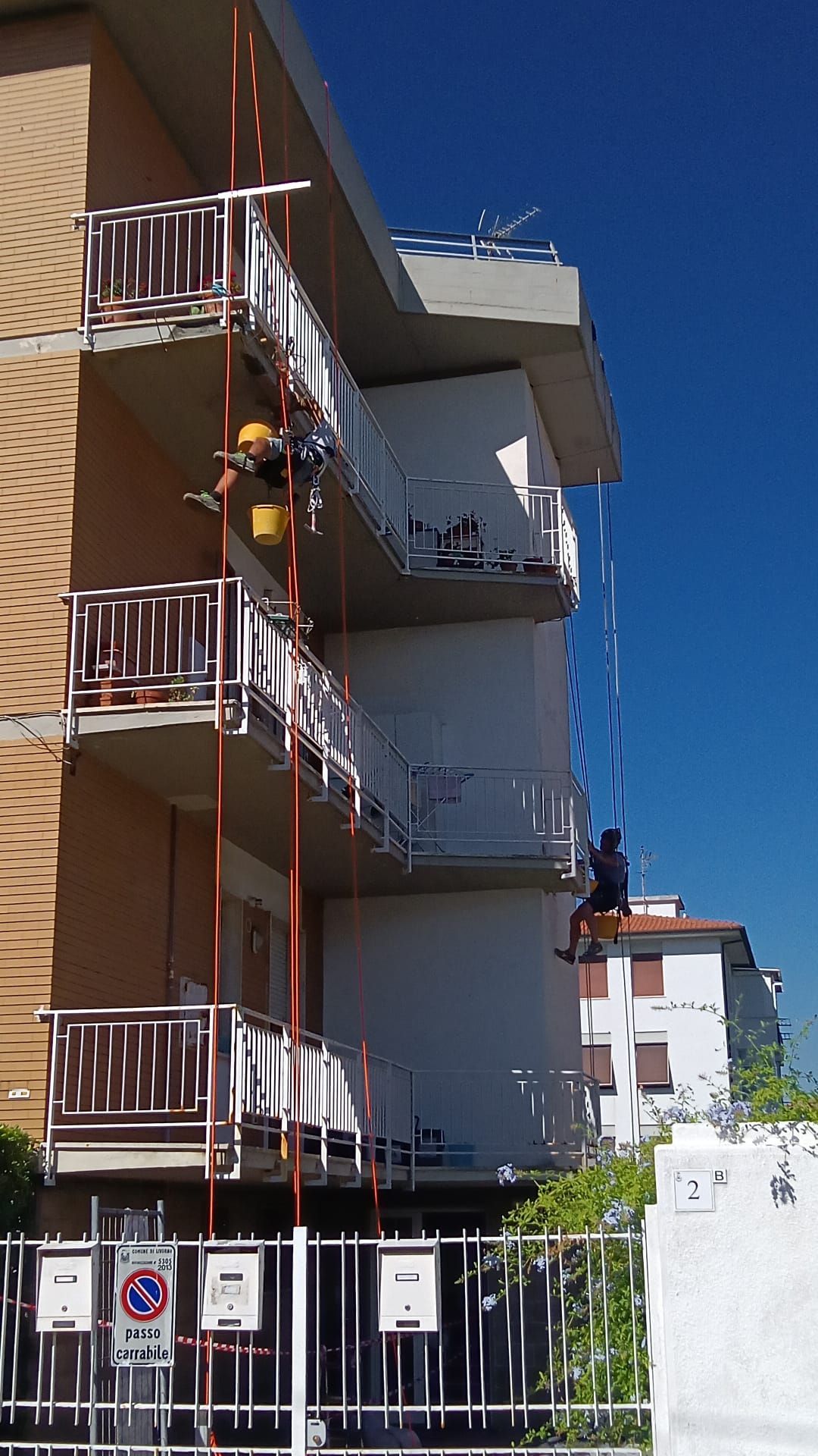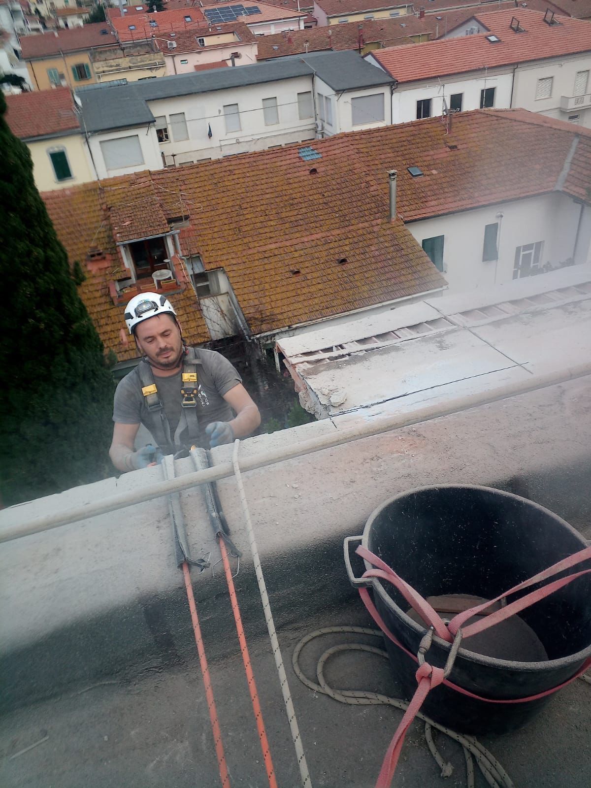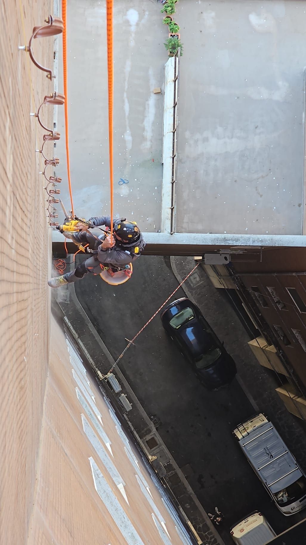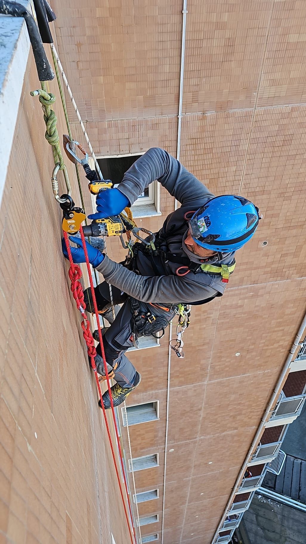 Ditta altamente qualificata per intervenire in quota mediante l'utilizzo di funi di sicurezza ancorate saldamente a travi o muratura portante.