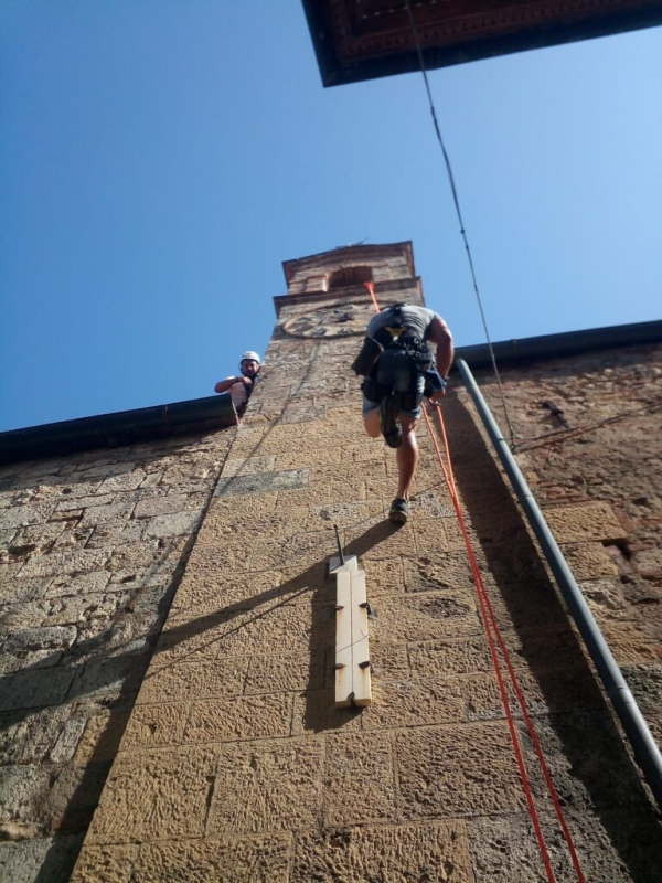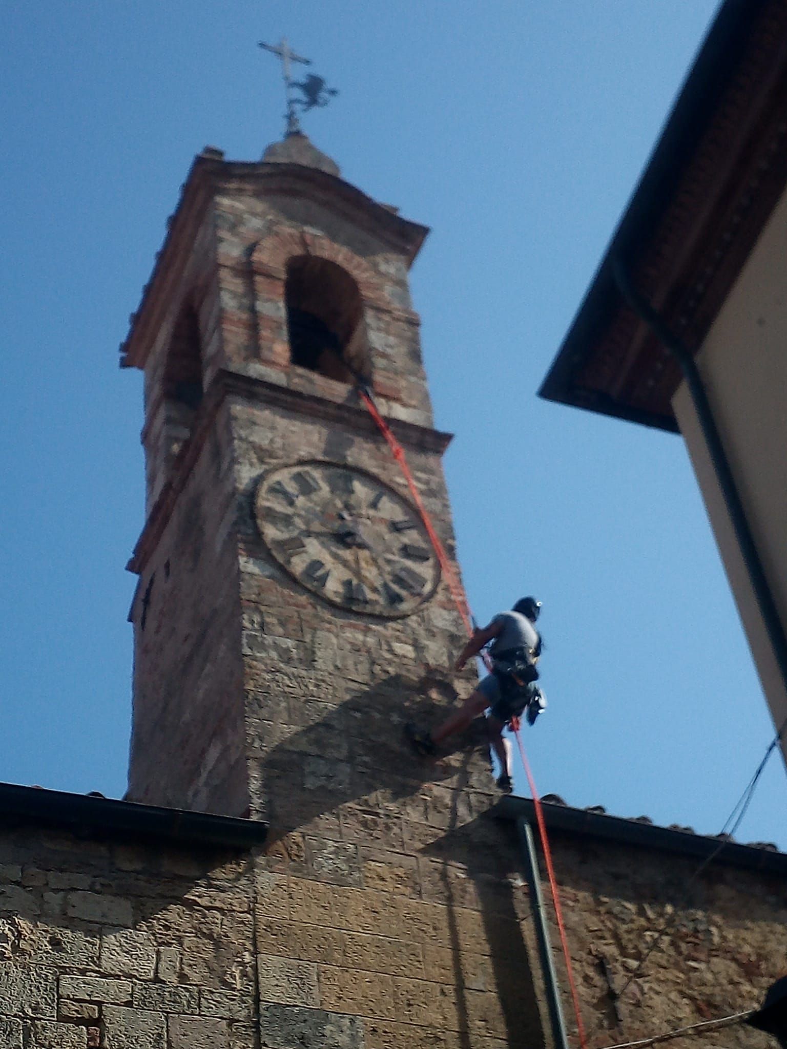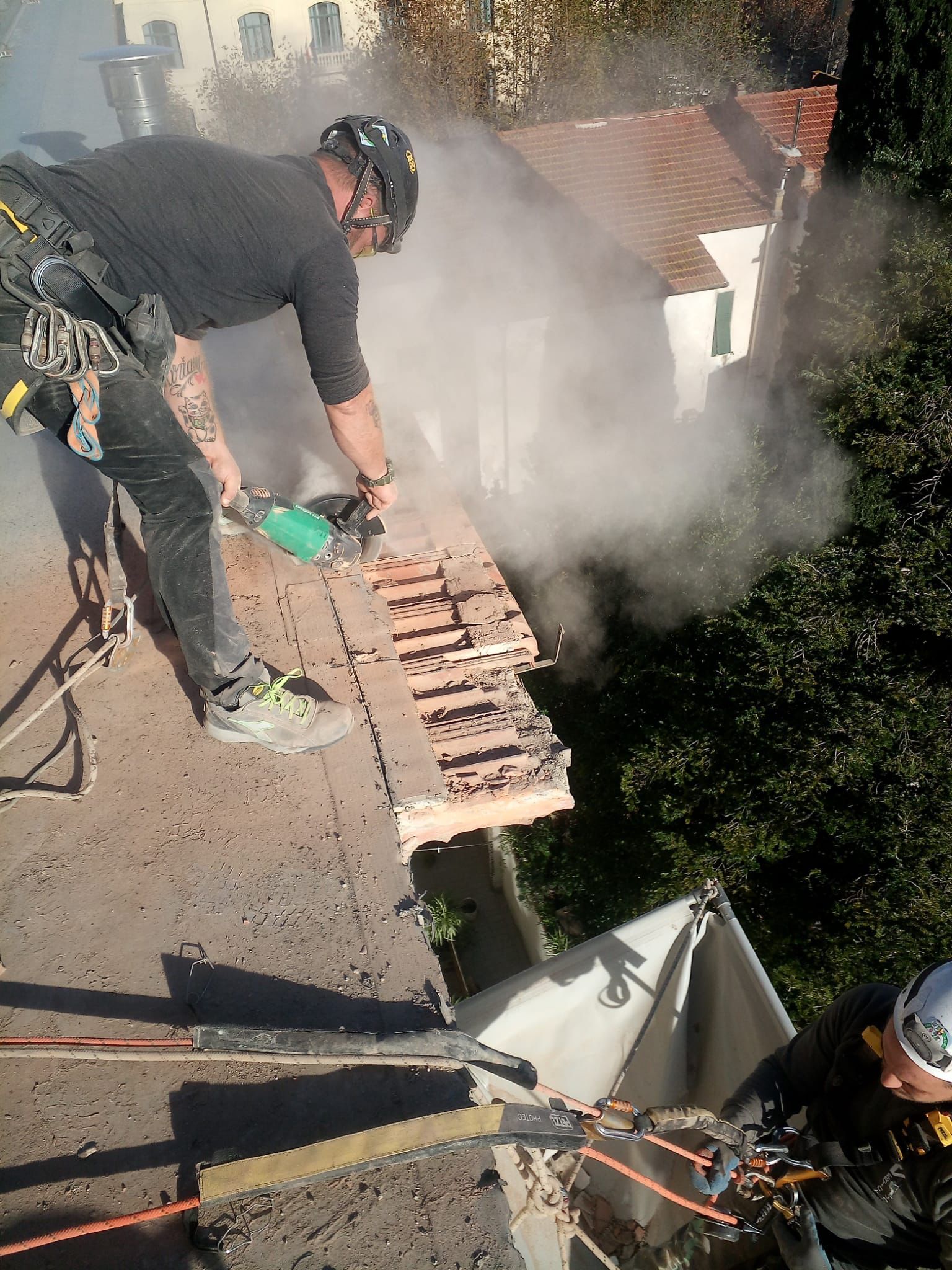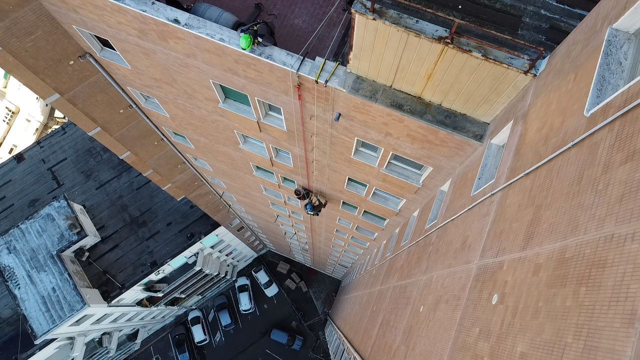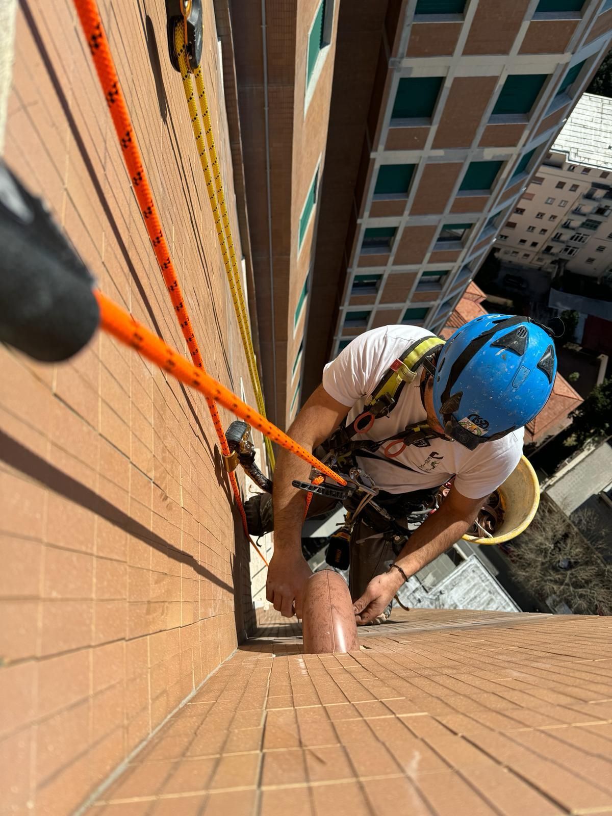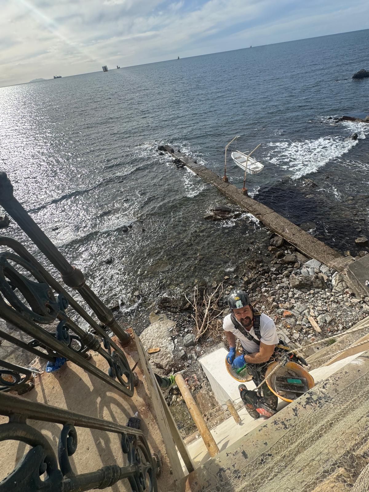 Ditta altamente qualificata per intervenire in quota mediante l'utilizzo di funi di sicurezza ancorate saldamente a travi o muratura portante.