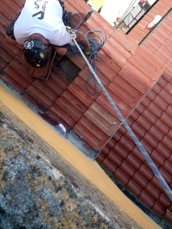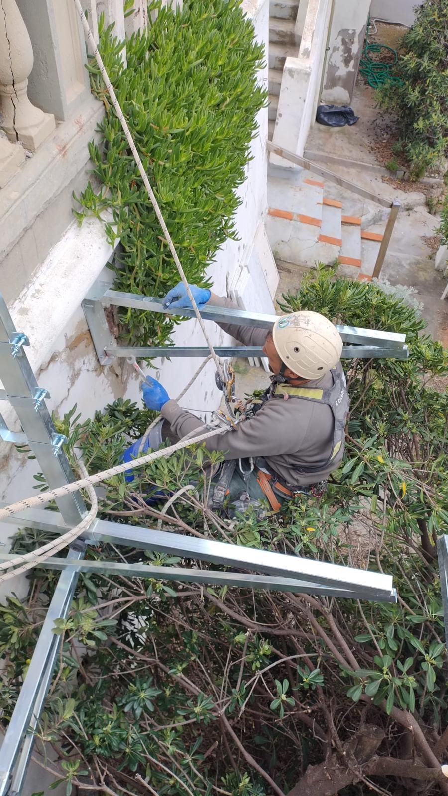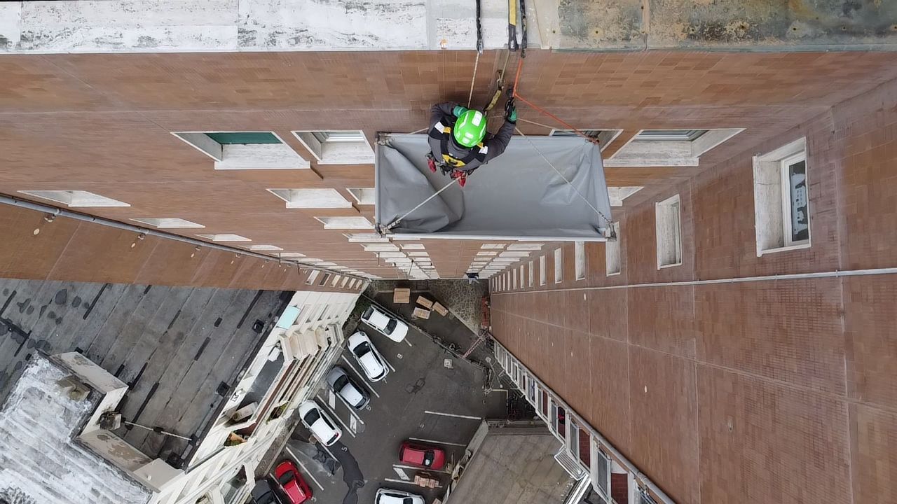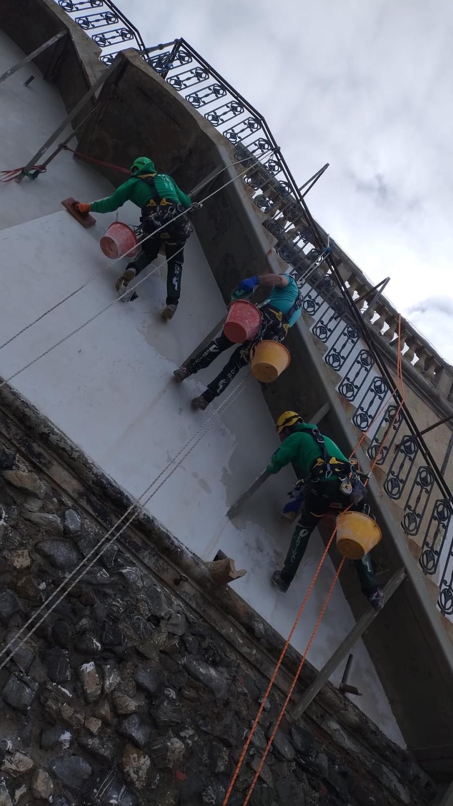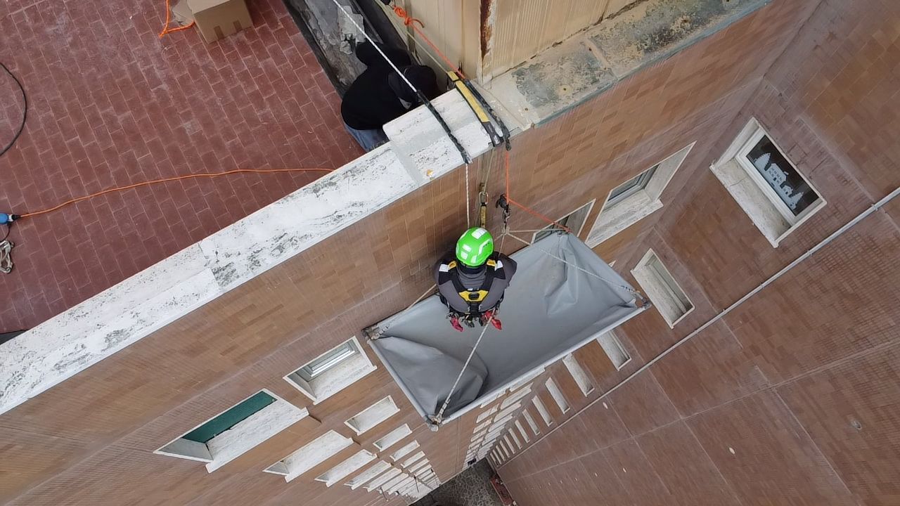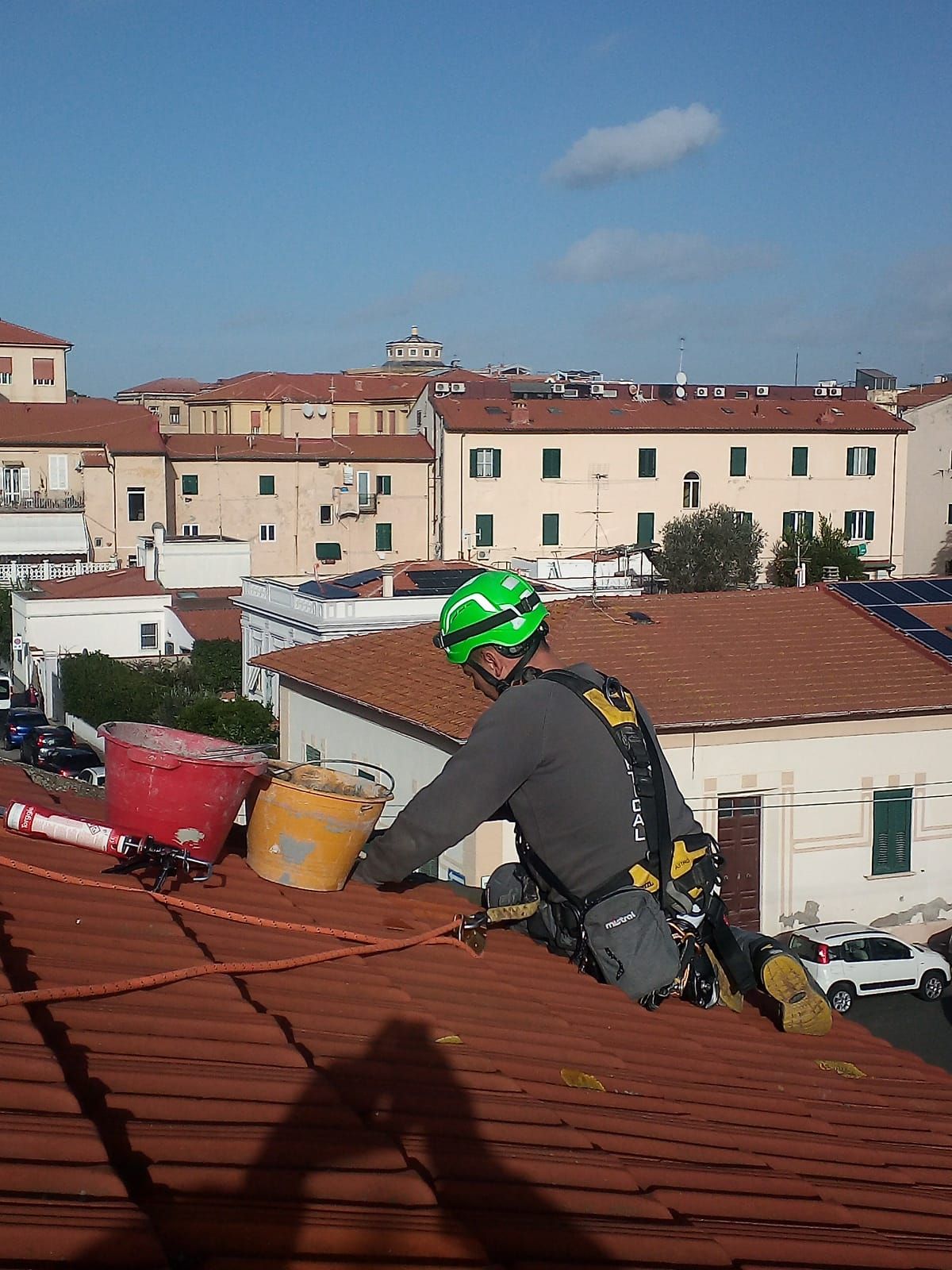 Ditta altamente qualificata per intervenire in quota mediante l'utilizzo di funi di sicurezza ancorate saldamente a travi o muratura portante.