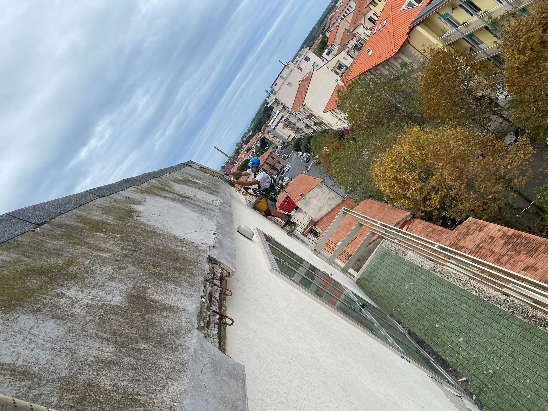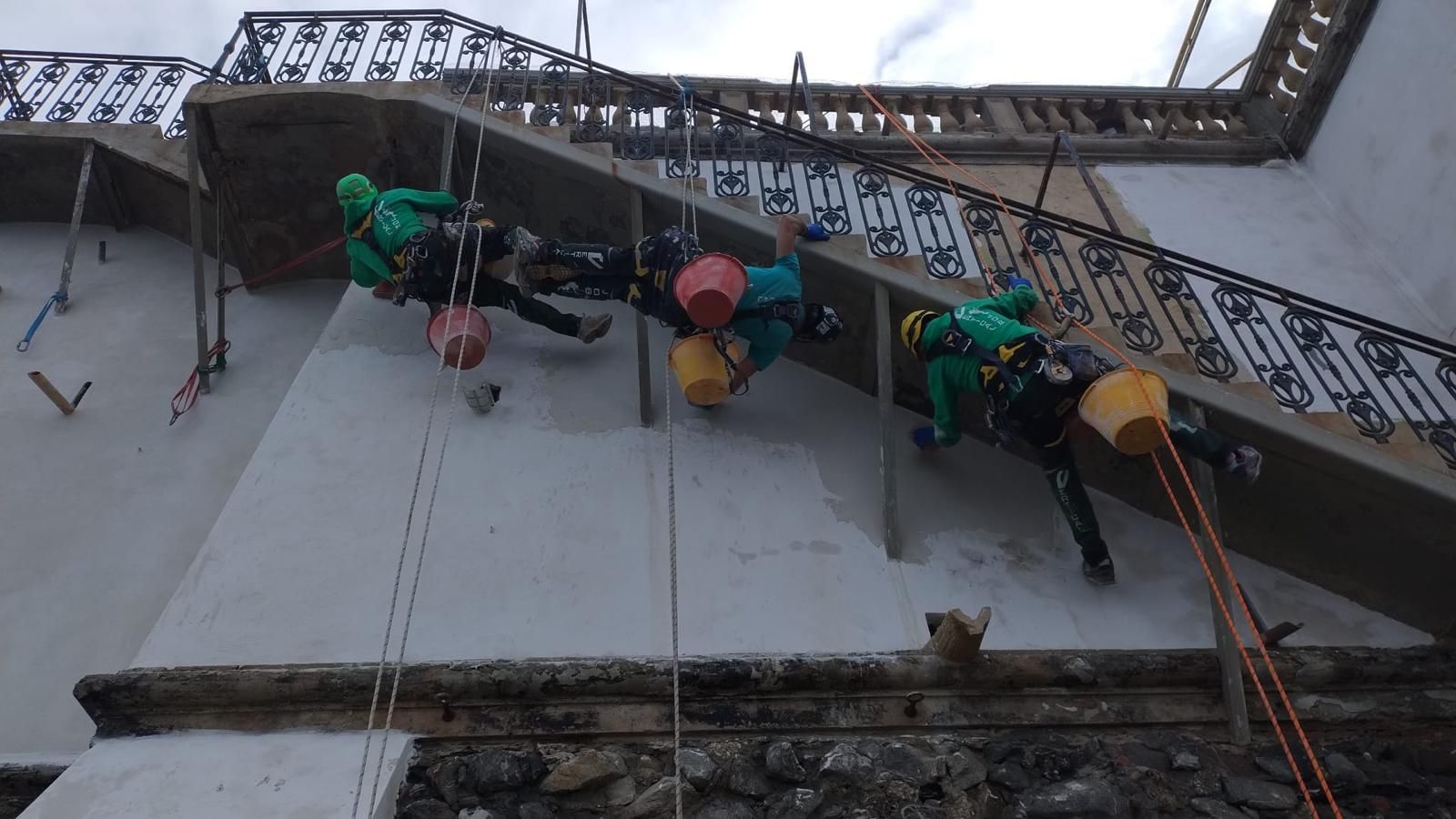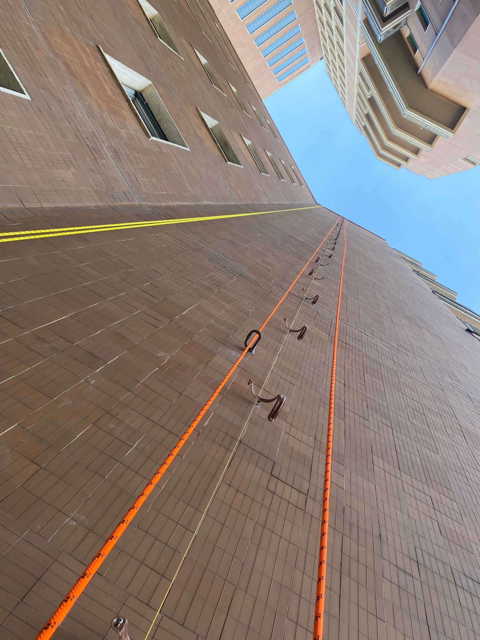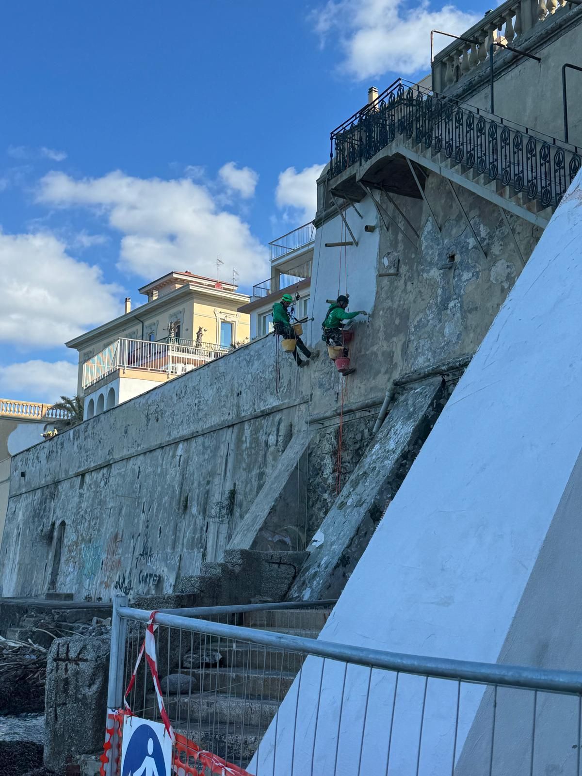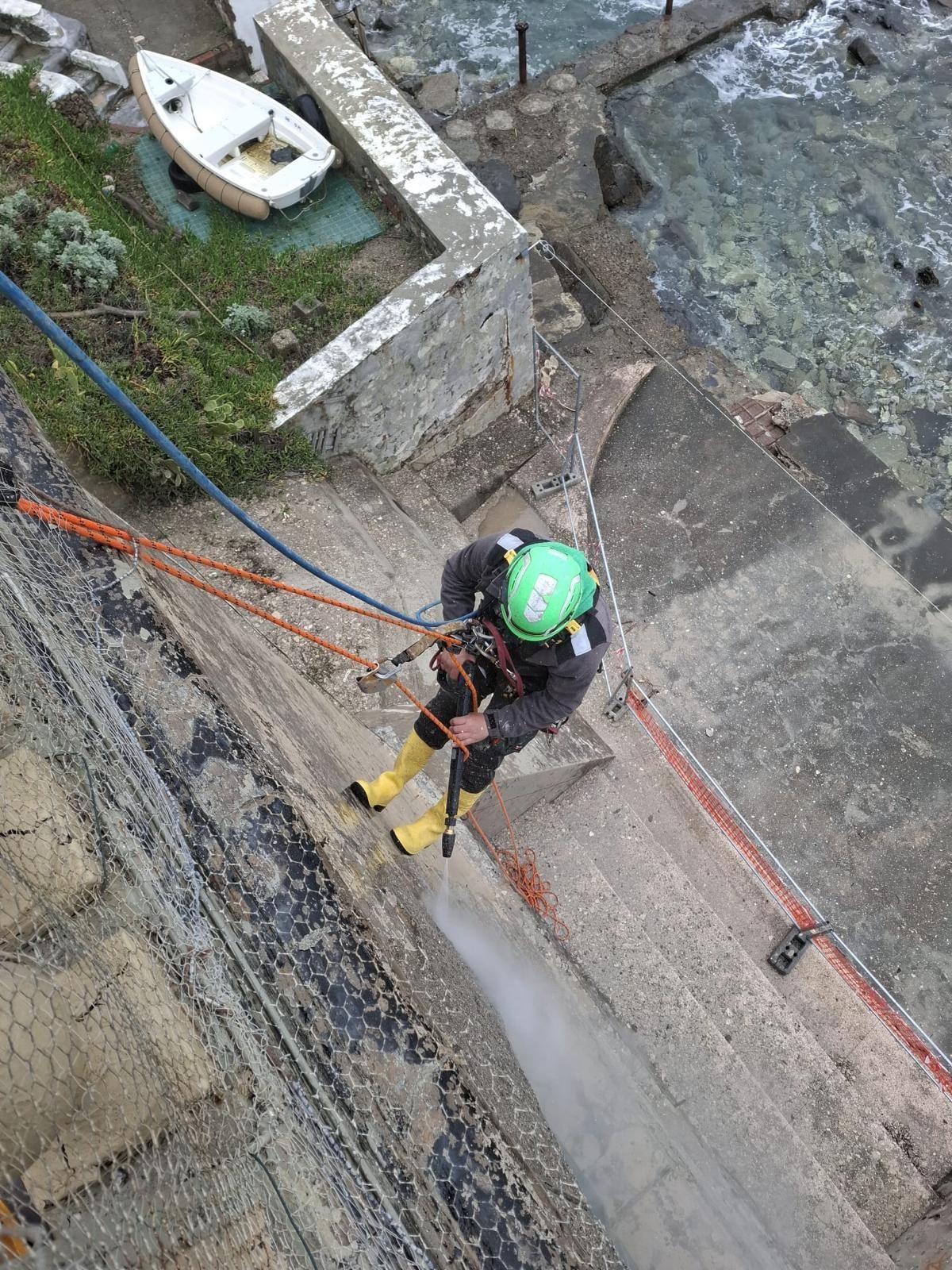 Ditta altamente qualificata per intervenire in quota mediante l'utilizzo di funi di sicurezza ancorate saldamente a travi o muratura portante.